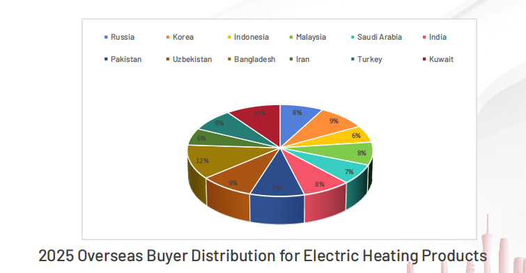The buyer profile demonstrates well-balanced representation across multiple sectors, including electric heating tube manufacturers, industrial electric heating, commercial electric heating, residential electric heating, distributors, traders, and international buyers, achieving comprehensive coverage of both upstream and downstream industry demands. The international contingent notably features buyers from diverse markets such as Russia, Korea, Indonesia, Malaysia, Saudi Arabia, India, Pakistan,Uzbekistan, Bangladesh, Iran, Turkey, and Kuwait, underscoring the event's remarkable global reach and sophisticated international composition.