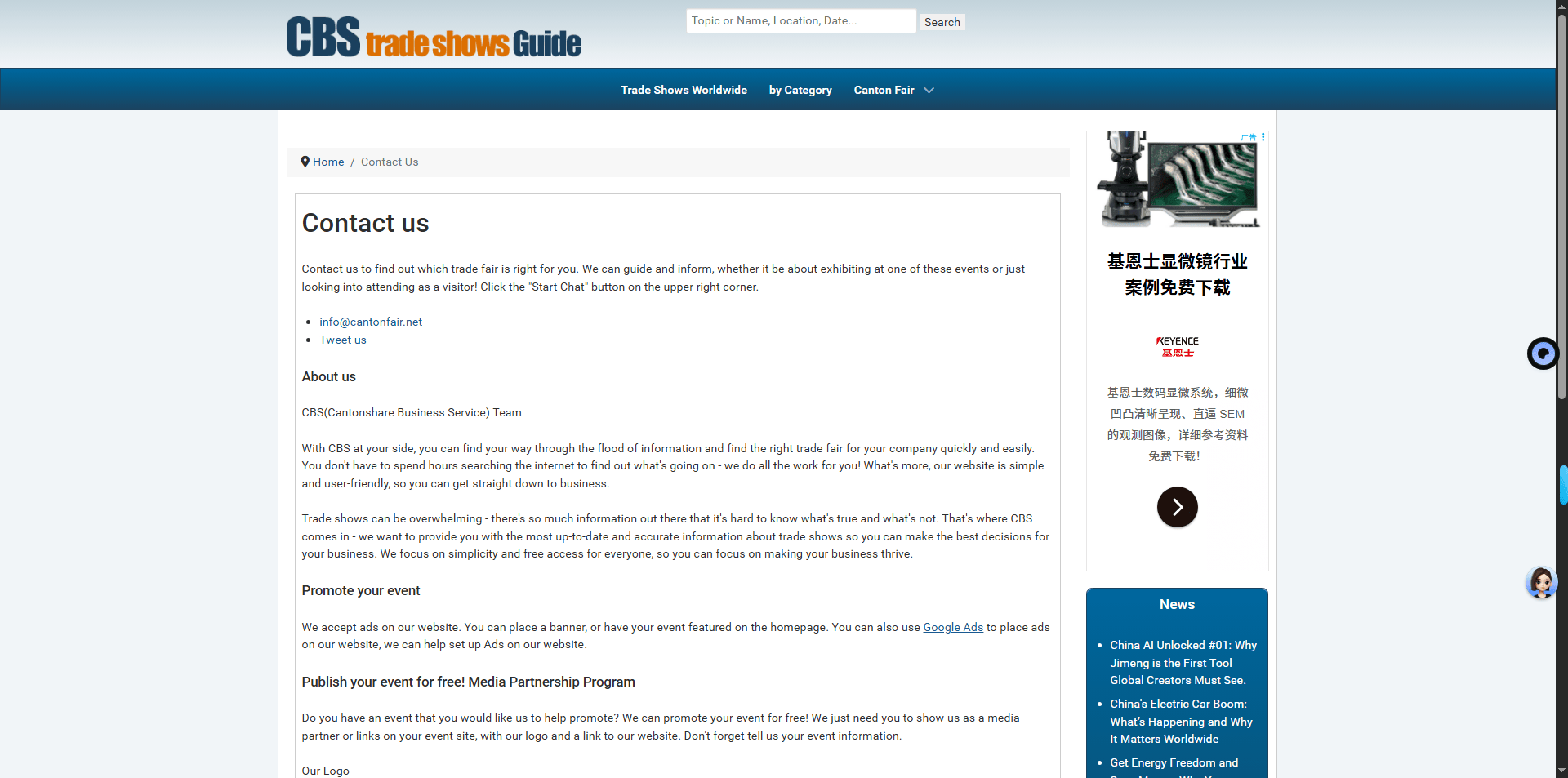 CBS平台致力于为全球企业提供高效、透明的展会信息服务,帮助用户从海量展会中精准匹配适合自身发展的参展与观展机会。平台内容涵盖全球各类行业展会,并提供免费活动发布与媒体合作支持。