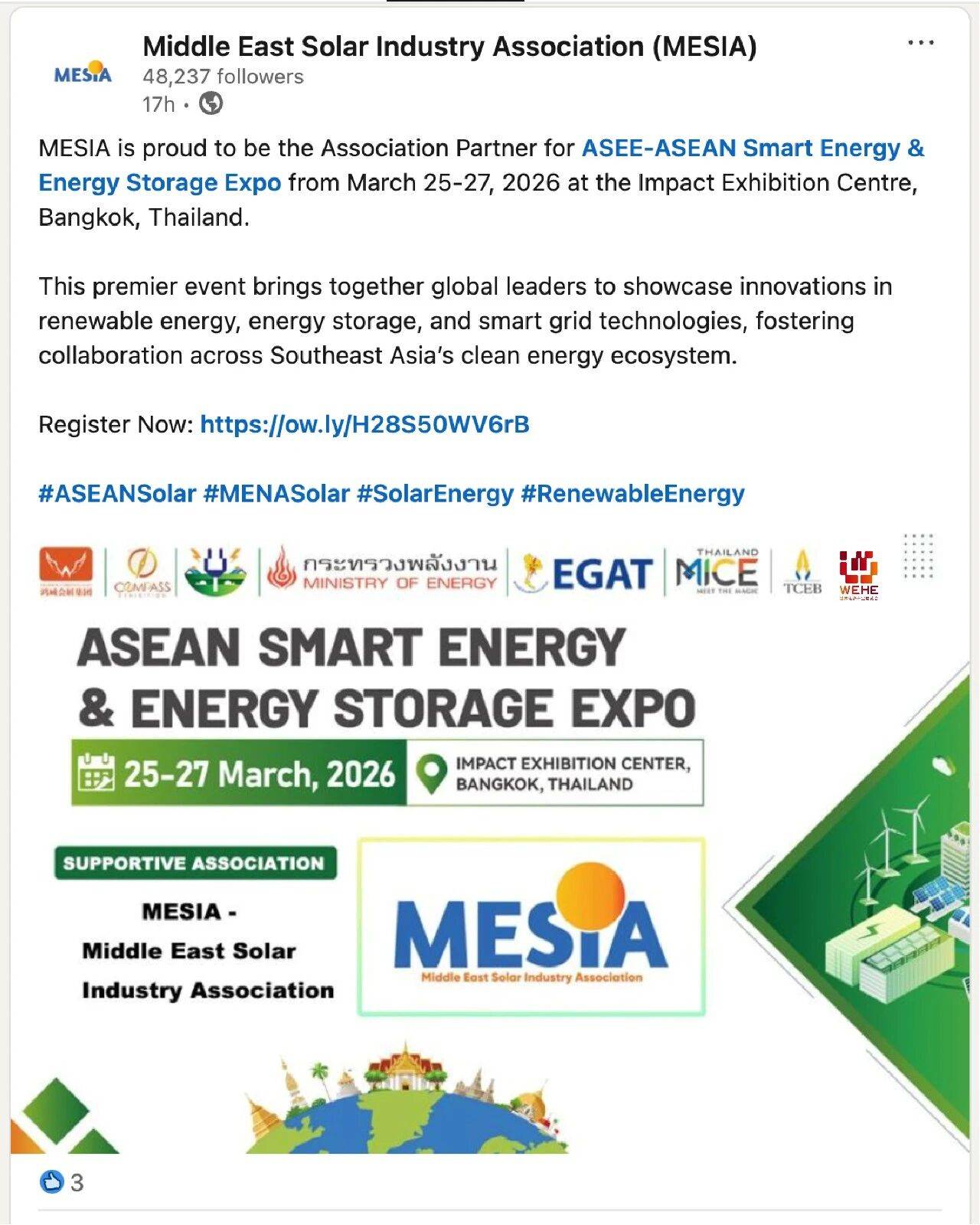 近日,中东太阳能协会(MESIA)正式成为东盟智慧能源及储能博览会(ASEE 2026)支持协会,中东与东盟两大新兴市场在清洁能源领域形成深度联动。作为清洁能源重要领域之一,电热产业成为连接中东技术与东盟市场的关键桥梁。