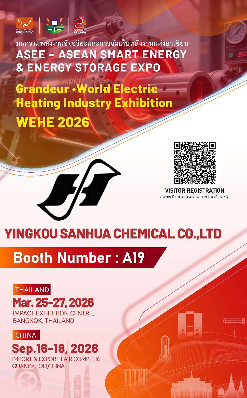 Yingkou Sanhua Chemical Co., Ltd. will showcase its high-quality magnesium oxide powder for electrical heating tubes at the ASEAN Smart Energy & Energy Storage Expo (ASEE 2026) and World Electric Heating Industry Exhibition (WEHE). The company invites global energy manufacturers to explore innovative applications of high-performance materials in new energy equipment!